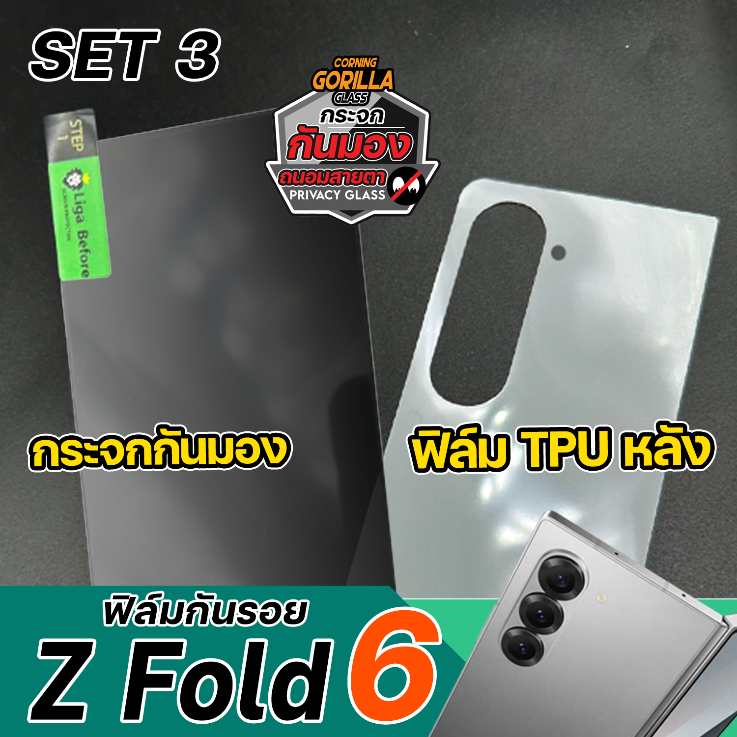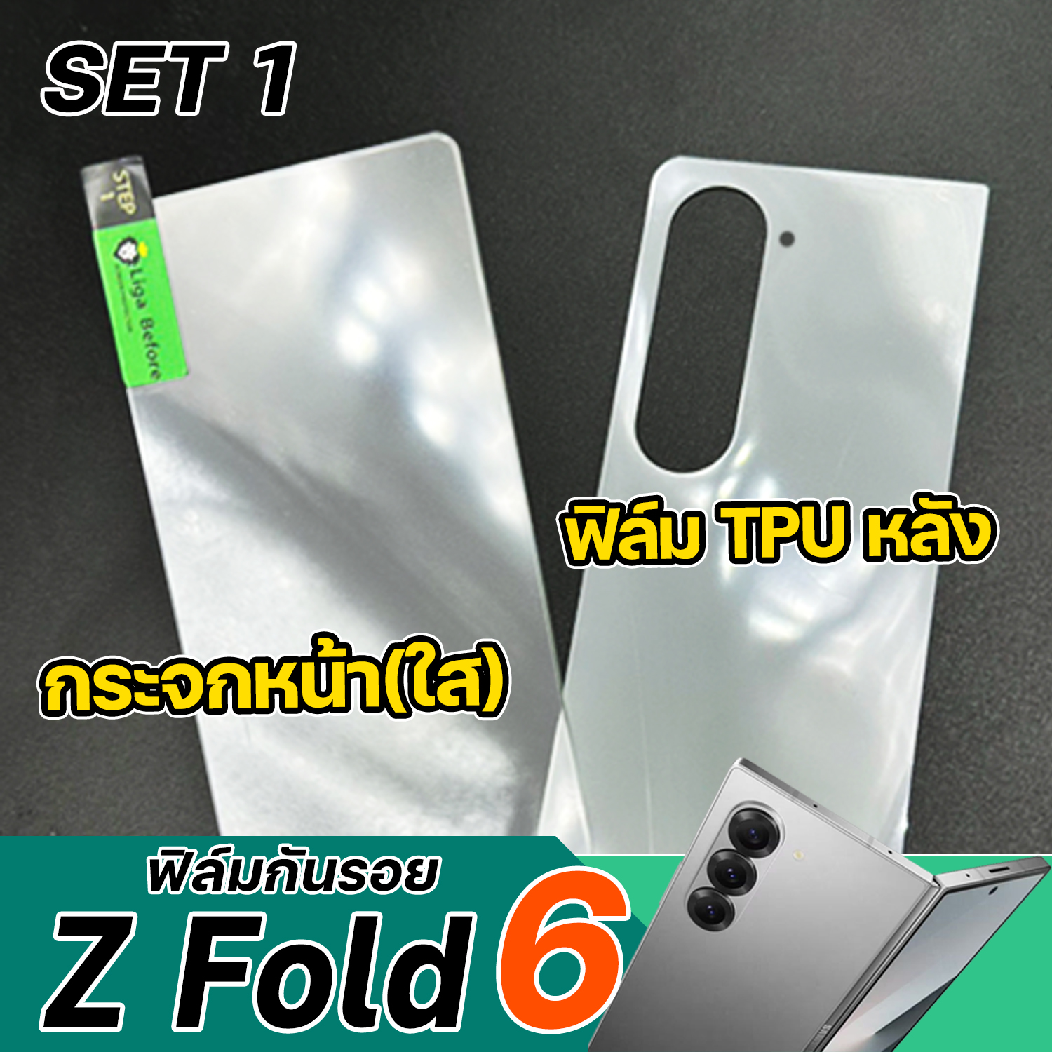 ฟิล์มกระจกหน้าแบบใส + Nano TPU หลัง + ฟิล์มหน้าจอ TPU Samsung Galaxy Z Fold6